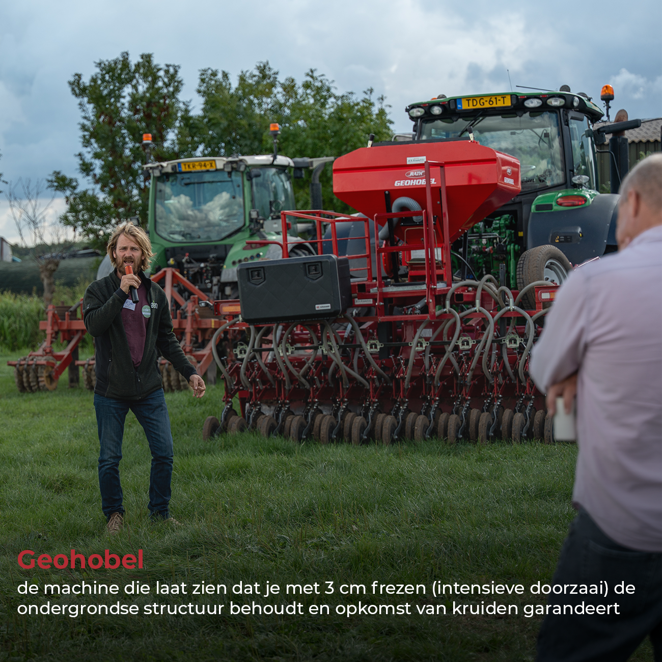 Ondanks de inspirerende woorden, is de Boerendag niet de plek om alleen maar te luisteren. Ook trokken we onze laarzen aan en doken de praktijk in. Verspreid over verschillende velden stonden negen demonstraties klaar, allemaal gebracht door boeren met een missie uit ons netwerk. Van mest tot machines en van biodiversiteit tot slimme innovaties: alles kwam voorbij.